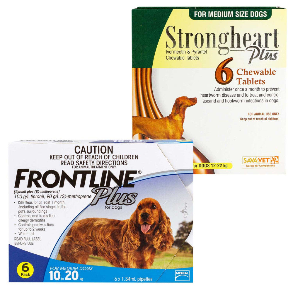 人気NO1のフィラリア予防薬ストロングハートプラス・チュアブルと、動物病院でも処方される定番ノミダニ駆除薬フロントラインプラスの中型犬用セット商品です。このセットでフィラリア&ノミマダニ対策はバッチリ!